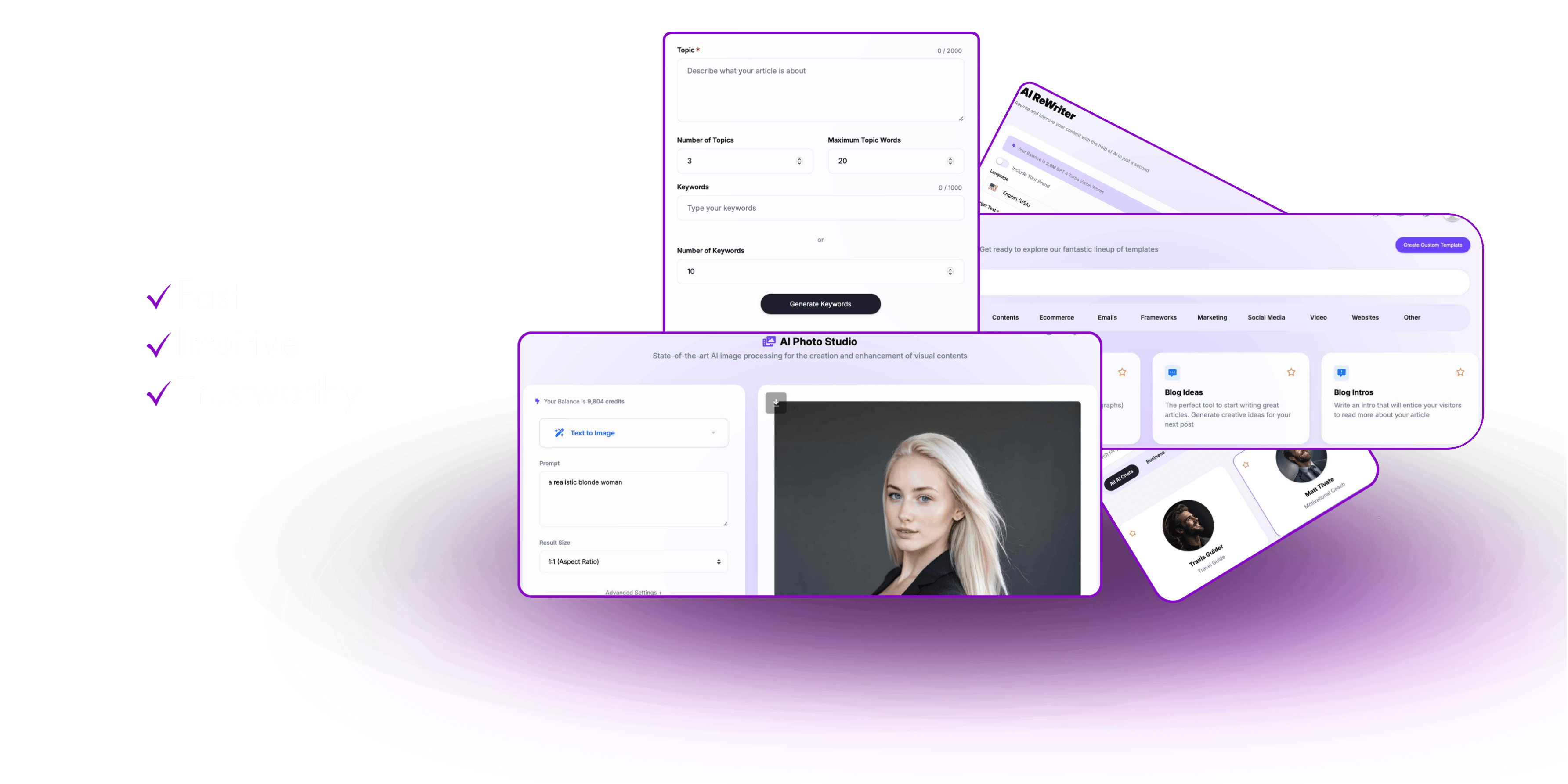 Discover all the features of our AI-powered generators and upscale your writing, images & more