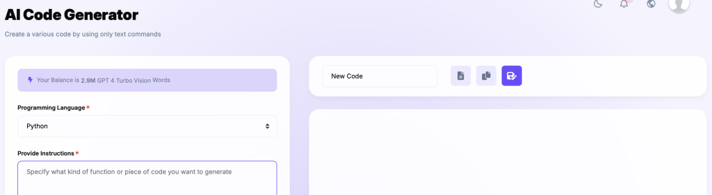 Our AI CODE section stands as a testament to the seamless integration of artificial intelligence with the world of programming, is offering a sophisticated platform where users can input text and effortlessly generate code in any programming language. This feature harnesses the power of the best AI for coding, providing an unparalleled ai coding assistant that simplifies the development process. Whether you are a seasoned programmer or a novice, our AI for programmers is designed to enhance productivity and foster innovation.